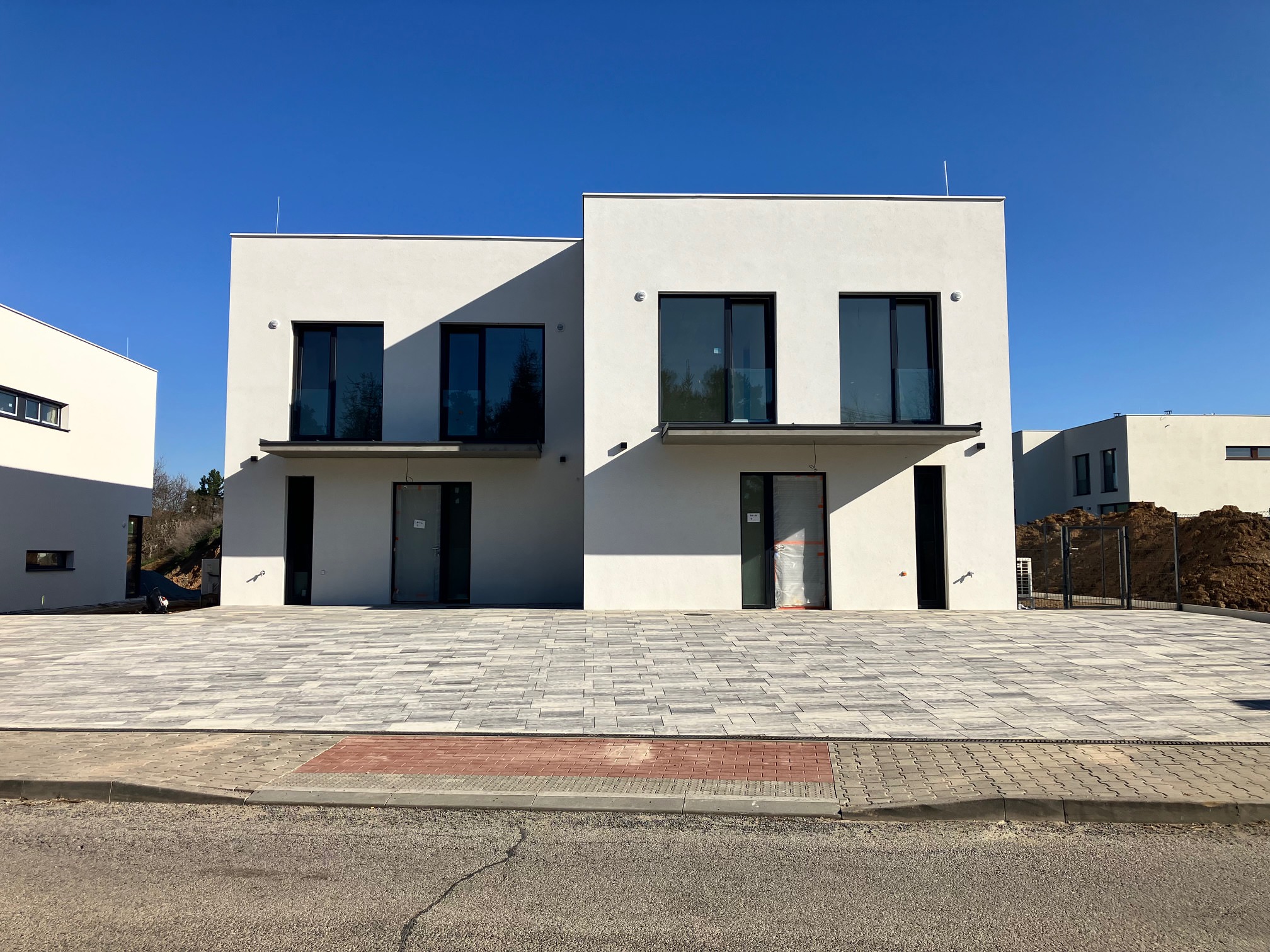 Projekt moderního rodinného bydlení o dispozicích 4+kk a 5+kk a o velikostech 146 a 155 m² s vlastními předzahrádky o velikostech od 173 do 416 m².