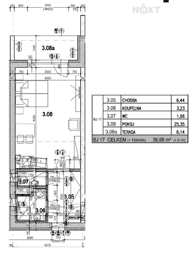 Apartmán je dále vybaven klimatizační jednotkou FUJITSU s inteligentním snímačem, který detekuje otevřené dveře, a elektrickým podlahovým vytápěním pro maximální komfort. K dispozici jsou také venkovní, předokenní elektrické žaluzie, zatahovací sítě proti hmyzu, vestavěné skříně na míru od truhláře s dostatkem úložného prostoru a moderní systém dálkového přístupu SMART KEY, který zajišťuje snadné a bezpečné ovládání.