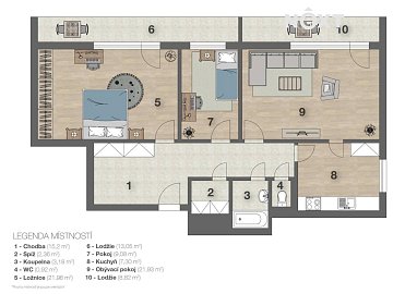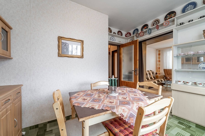 Byt nabízí praktické dispoziční uspořádání – čtyři světlé a prostorné pokoje, samostatnou kuchyň, koupelnu a WC, chodbu s vestavěnými skříněmi a zasklenou lodžii přístupnou z jednoho z pokojů. Součástí je i sklep v suterénu domu. Byt je v dobrém stavu a připraven k okamžitému nastěhování, případně nabízí možnost rekonstrukce a úprav podle vlastních představ.