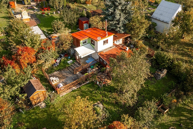 Představuji vám nabídku prodeje chaty v klidné lokalitě Kladno Dubí, osada Kateřina. Chata o zastavené ploše 34 m2, je postavena na pozemku o celkové výměře 376 m2. Je obklopena vzrostlou okrasnou zahradou, ale naleznete zde i místo pro pěstování domácích plodin. Vstup do chaty je z jižně orientované terasy, a to přímo do kuchyně, která je vybavena kuchyňskou sestavou. Z kuchyně se vchází do chodby se schodištěm, ze které je vstup do hlavní obytné místnosti, která je vybavena krbovými kamny a do koupelny, vybavenou sprchovým koutem, umyvadlem a toaletou. Po schodišti vystoupáme do druhého nadzemního podlaží, kde se nachází ložnice a pracovní kout. Na jižní straně chaty je vybudována pergola pro posezení s přáteli s otevřeným krbem a na ni navazují další terasovitě uspořádané terasy, kde je možné umístit vířivku, nebo lehátka pro letní odpočinek. Chata je napojena na elektřinu a sezónní vodovod. Parkování je možné před vstupem do chatové oblasti. Chata se nachází pouhých 10 minut jízdy od centra Kladna. V okolí je řada možností pro trávení volného času v přírodě – v dojezdové vzdálenosti do pěti minut se nachází kladenská cyklostezka a množství lesních stezek. Dobré spojení zajišťuje i MHD, autobusová zastávka je v docházkové vzdálenosti do 15 minut. Pro komunikaci uvádějte evidenční číslo zakázky N114529.