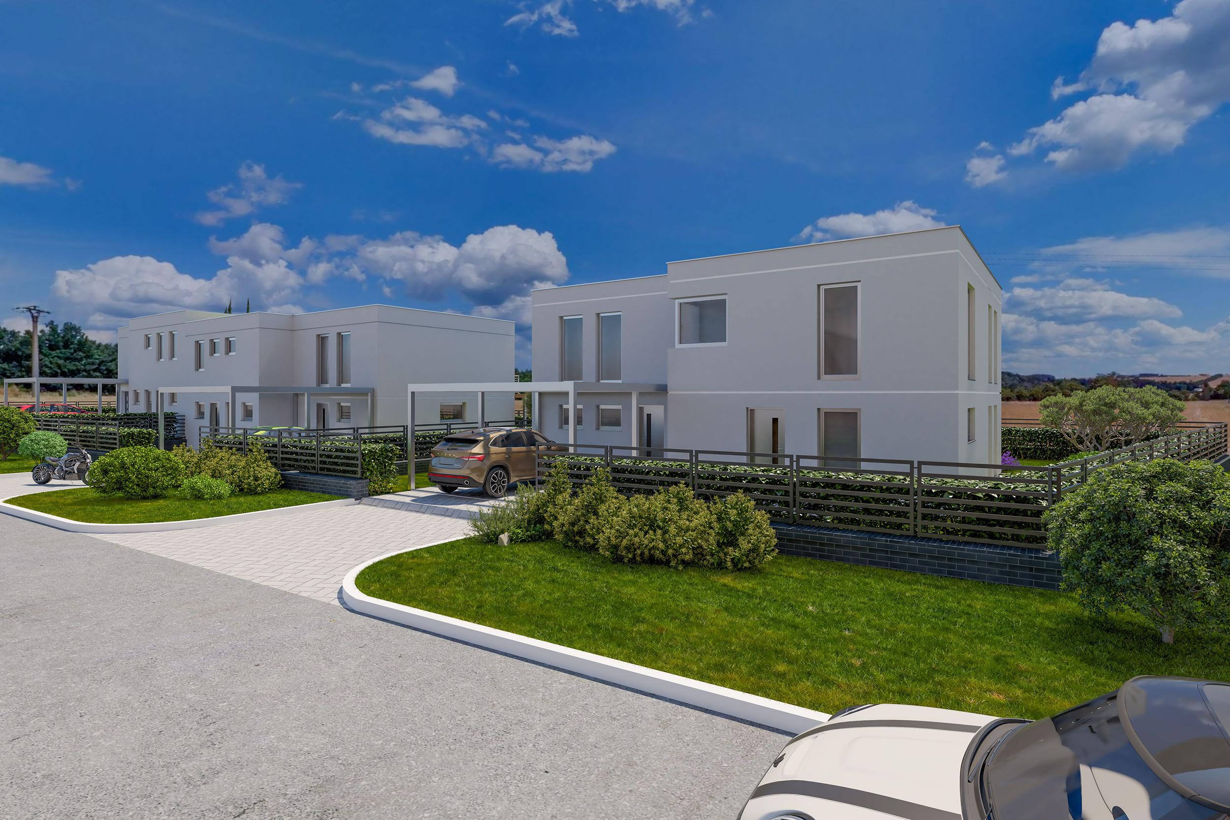 Stavba: Ve výstavbě, cihlová, plochá střecha, keramické stropy, sádrové omítky, vinylové podlahy, plastová okna, laminátové dveře, schodiště dřevo/nerez, fasáda akrylát.